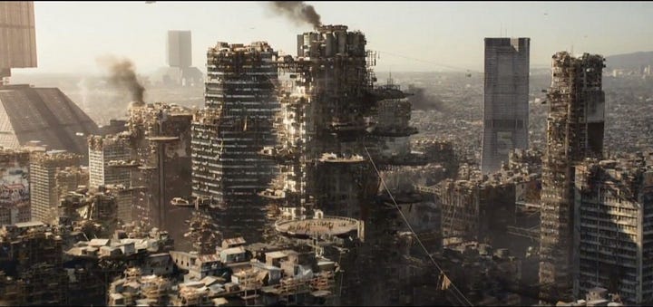 Climate strain is a less coherent idea, but is often subtly embedded into our collective imagination. As the environment degrades, civilization begins to break down. Cities are partially flooded, walled off, or falling apart, while scrappy survivors in the hinterlands re-learn to live off the land. It’s harder to capture the vibe, but if it had a soundtrack, it might be “Dune.”