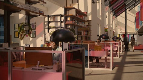 But, unfortunately, Solarpunk shares a flaw with mid-century futurism: it’s too far removed from the present. Solarpunk rarely engages with what happened to the world we live in now. Where are the partial retrofits, the scaffolding, or the old strip malls? What happened to our downtowns, our industrial parks, or our gated subdivisions? Dreaming from a blank slate makes for engaging fantasy, but it’s a trap.
